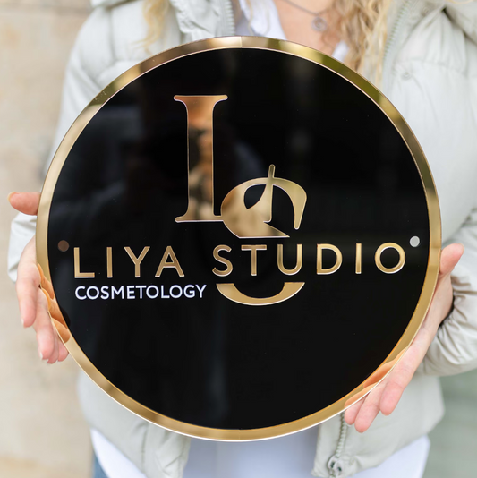 Insegna in plexiglas nero per saloni personalizzati, Insegne estetiche, Insegne Bliss, Insegne per ufficio, Insegne aziendali 3D, Segnaletica clinica, Insegne per dentisti, Insegne da parete per ufficio logo in plexiglas