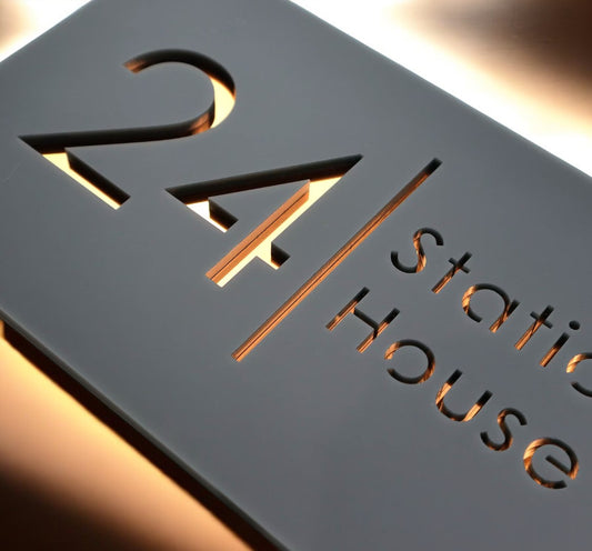 Insegna retroilluminata in acrilico - Insegna in acrilico satinato con logo nero Lettere nere
