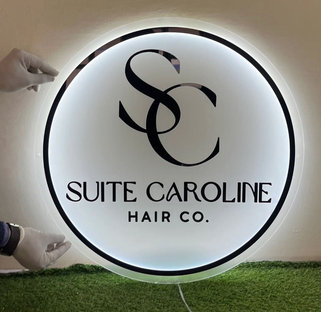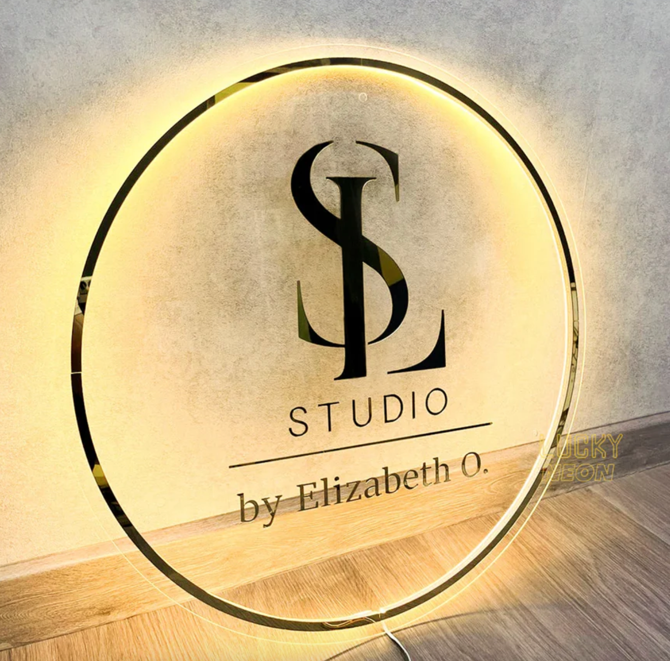 Aggiungi un tocco di raffinatezza alla tua attività con la nostra insegna retroilluminata in acrilico. L'acrilico satinato abbinato al logo dorato e alle lettere a specchio crea un look elegante e moderno. Illumina il tuo marchio e attira l'attenzione con questo segno accattivante.