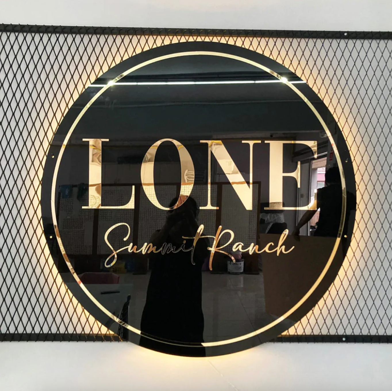 Aggiungi un tocco di raffinatezza alla tua attività con la nostra insegna retroilluminata in acrilico. L'acrilico satinato abbinato al logo dorato e alle lettere a specchio crea un look elegante e moderno. Illumina il tuo marchio e attira l'attenzione con questo segno accattivante.