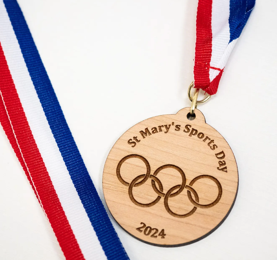 Medaglia di legno STILE OLIMPICO personalizzata 11 sport Medaglie personalizzate Premio di gara Maratona personalizzata Corsa Ciclo virtuale Calcio Danza Nuoto Sport