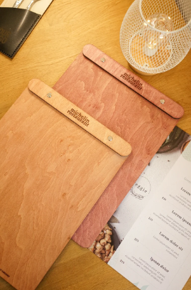 menu board con supporto a bacchetta in legno per fogli, supporto menu inciso, cartella menu ristorante, pannello menu, libro menu, copertina menu personalizzata, copertina menu bevande per bar e cocktail bar