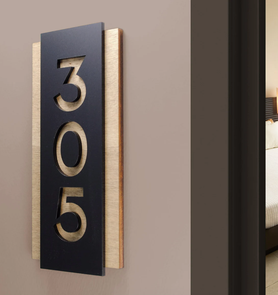 numero moderno camera hotel in legno e acrilico, targa per numero camera, targa per porta appartamento