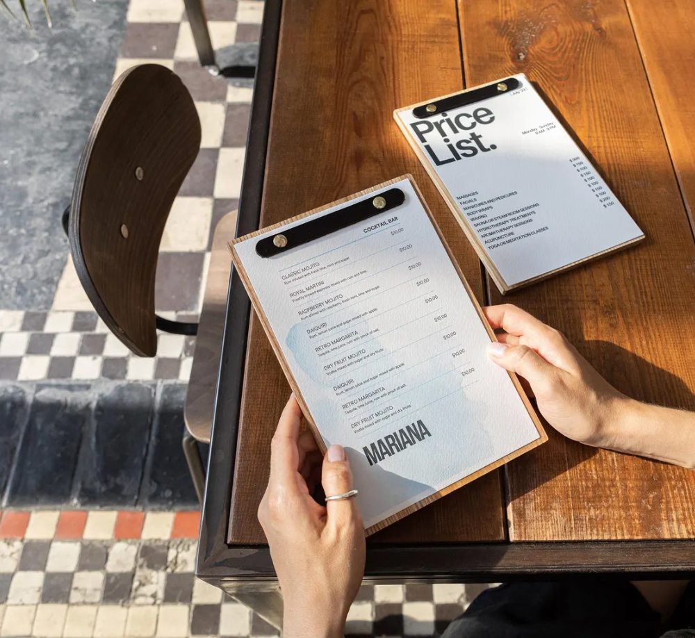 Grazie alla personalizzazione su misura, puoi aggiungere il tuo logo o un dettaglio distintivo, rendendo questo portamenù non solo funzionale ma anche un elemento di branding per il tuo locale.