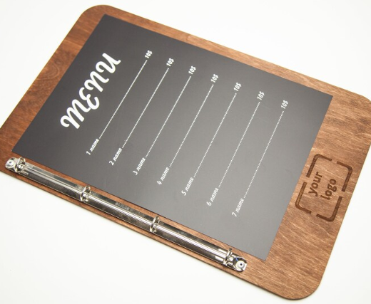 Grazie alla personalizzazione su misura, puoi aggiungere il tuo logo o un dettaglio distintivo, rendendo questo portamenù non solo funzionale ma anche un elemento di branding per il tuo locale.