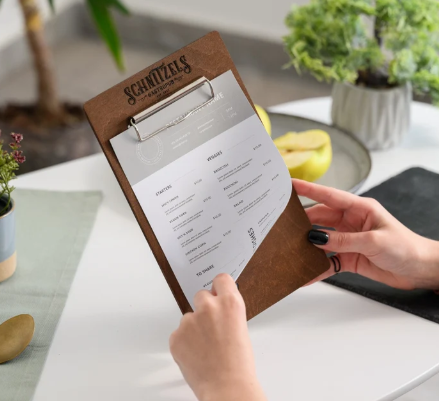 Grazie alla personalizzazione su misura, puoi aggiungere il tuo logo o un dettaglio distintivo, rendendo questo portamenù non solo funzionale ma anche un elemento di branding per il tuo locale.