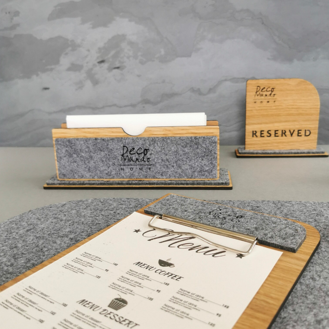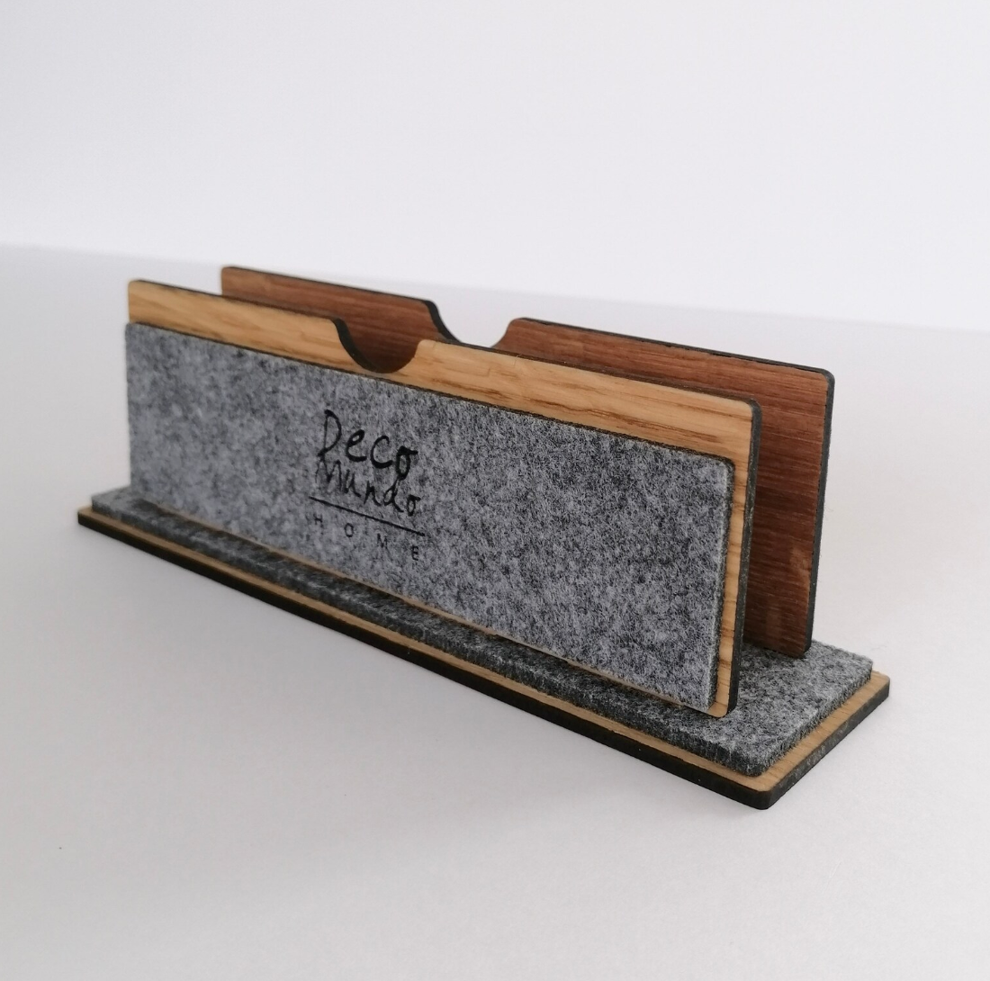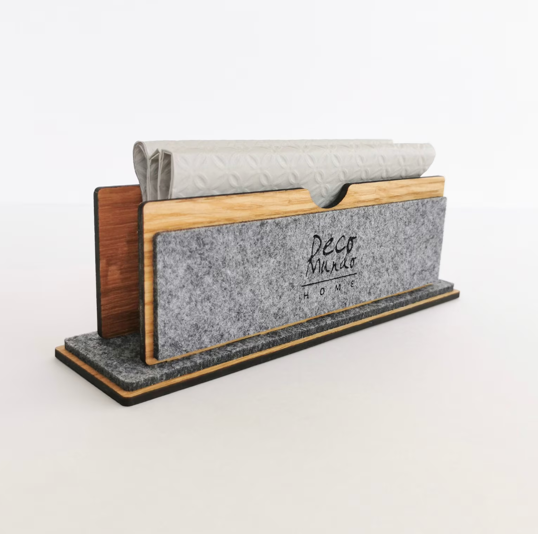 Rendi unica la tua tavola con il nostro portatovaglioli in legno e feltro, un accessorio raffinato che unisce design e praticità. Realizzato con materiali di alta qualità, questo portatovaglioli è perfetto per ristoranti, bar, eventi speciali o per aggiungere un tocco di classe alla tua casa.