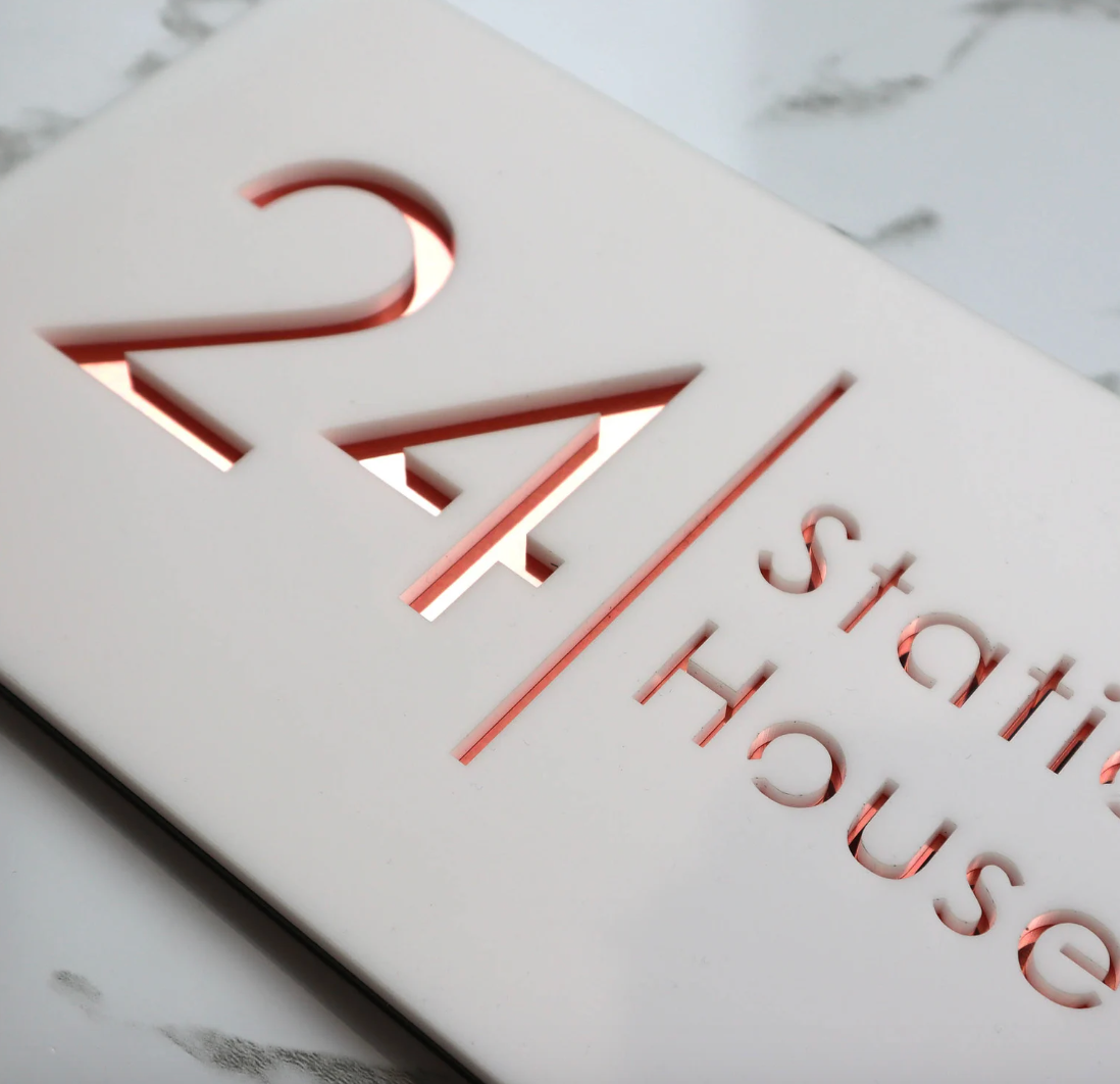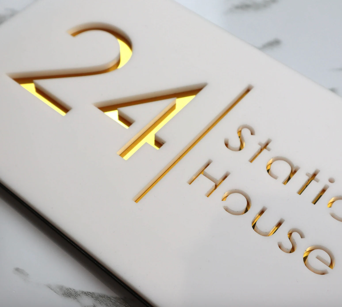 Targa per casa in acrilico e alluminio tagliata al laser Bellissima
