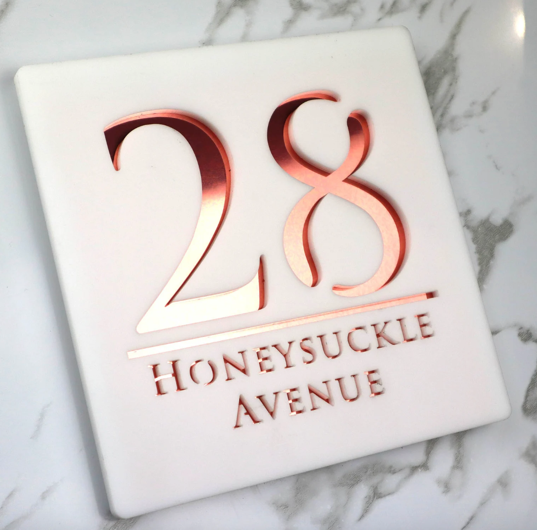 Targa per casa in acrilico e alluminio tagliata al laser Bellissima
