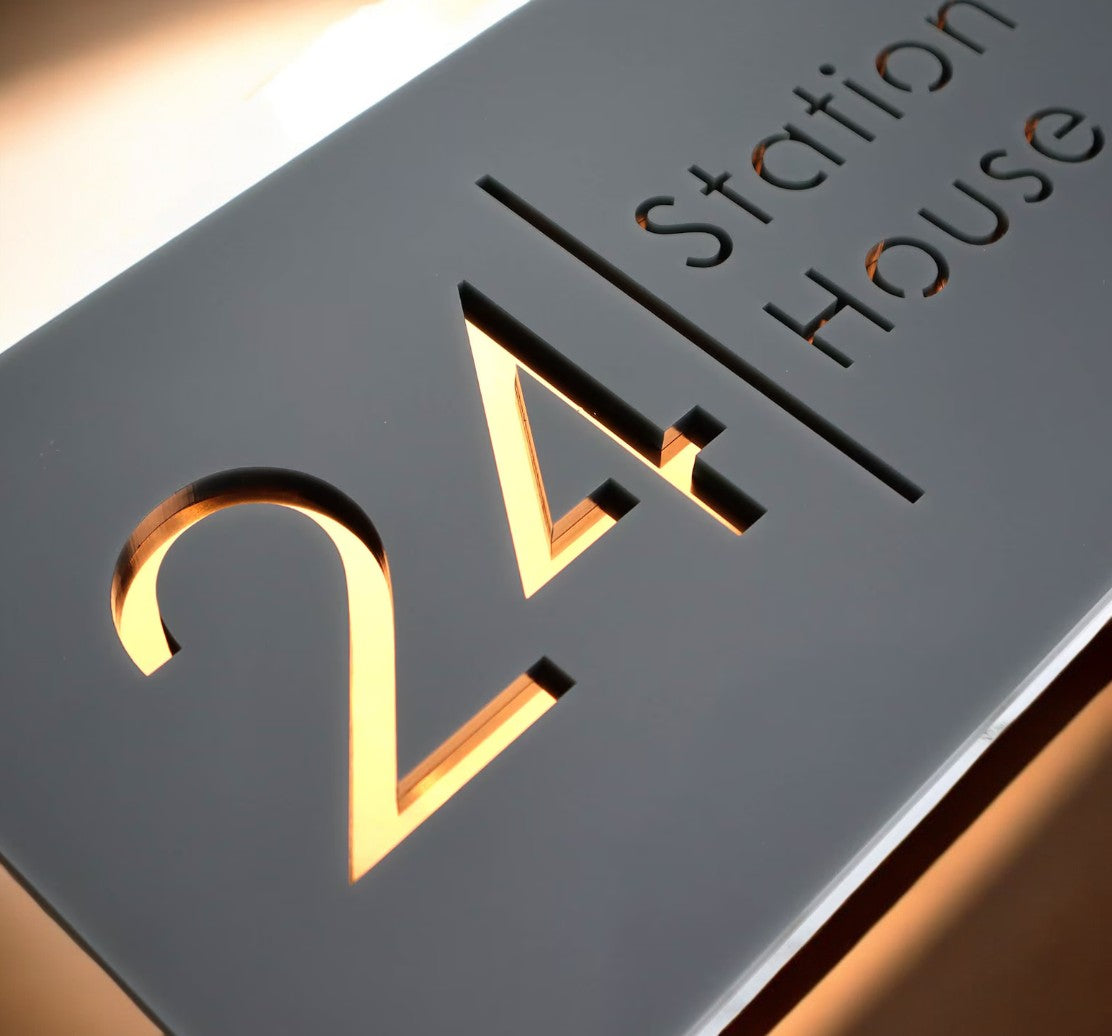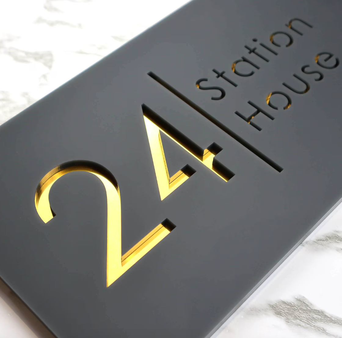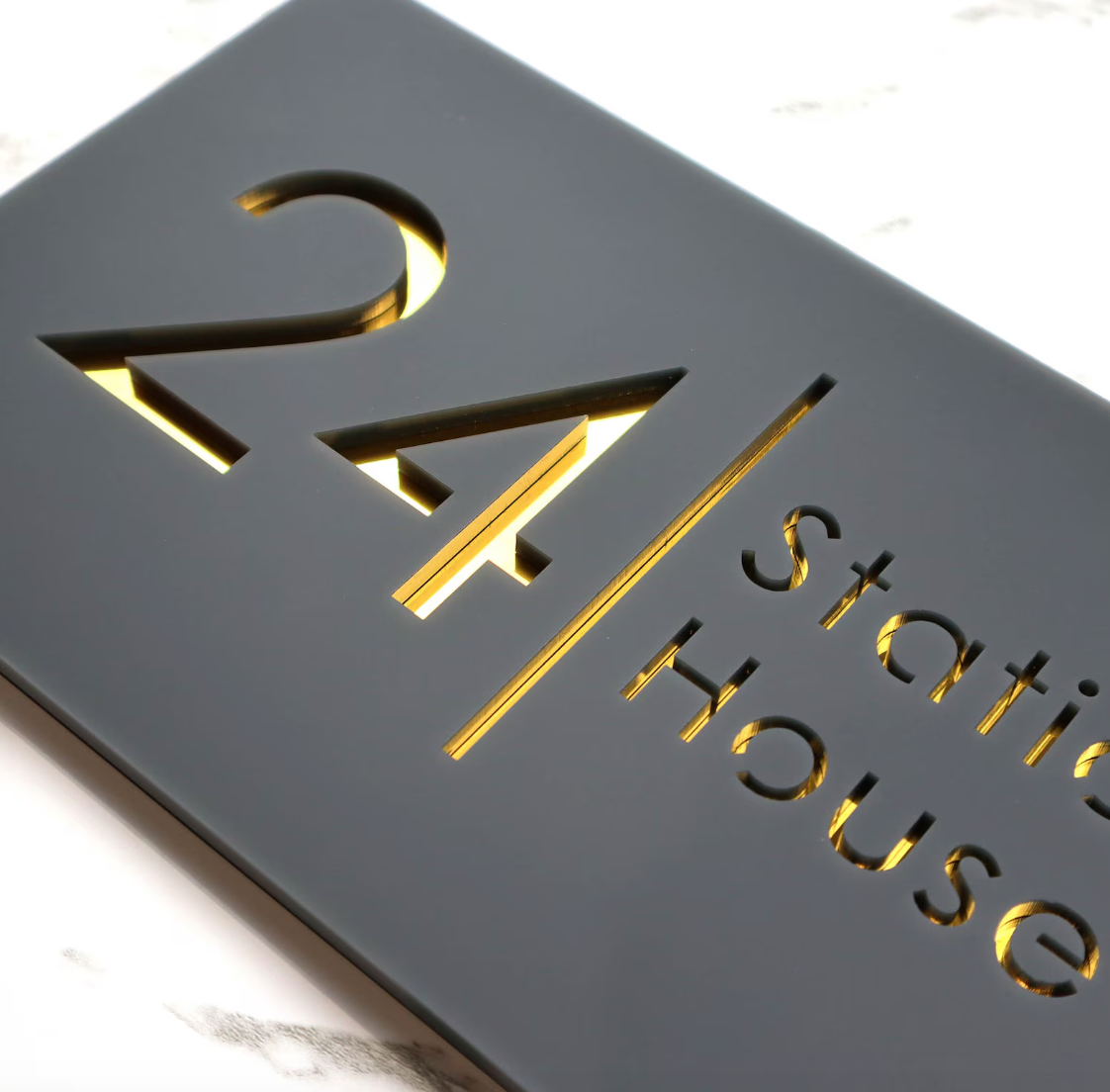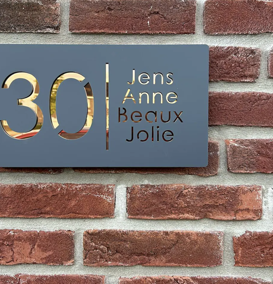 Targa per casa in acrilico e alluminio tagliata al laser Bellissima