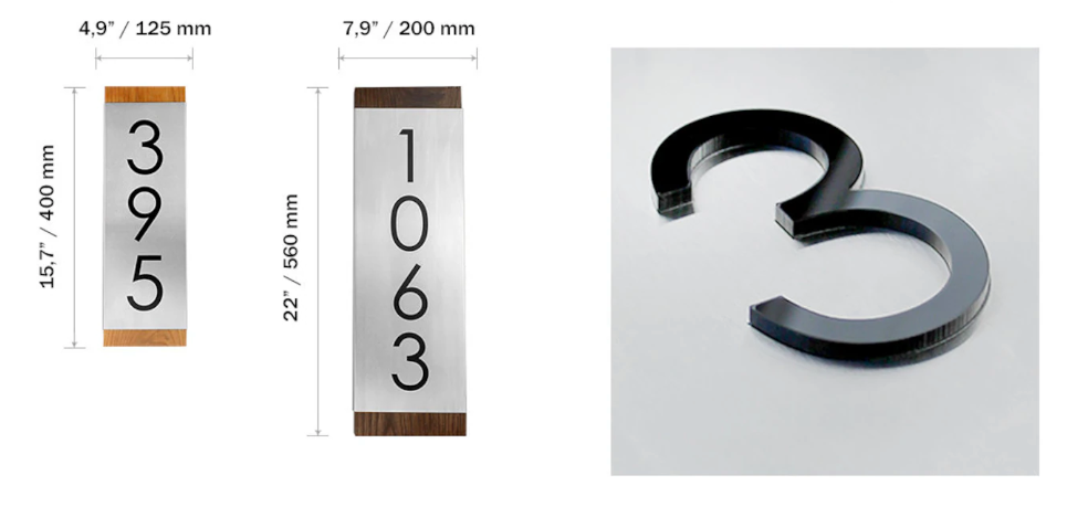 Targa con numeri civici moderni in legno e plexiglas – Targhe per indirizzi in acciaio – Indirizzo di casa contemporaneo – Targhe in metallo personalizzate